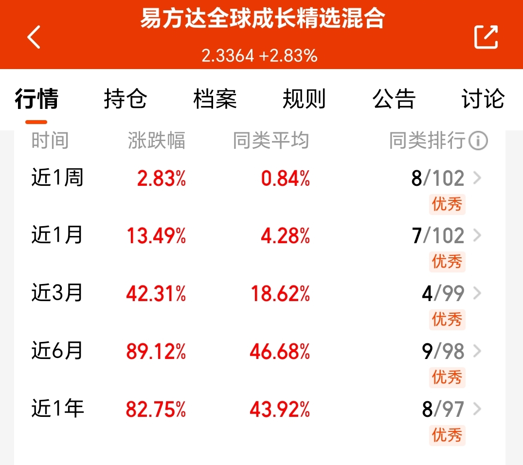前阵子总纠结买基金该选哪个市场,美股、A股、港股互联网也有不错的机会,怕选岔了。还是选择相信$易方达全球成长精选混合(QDII)人民币C(OTCFUND|012922)$,这个是全球配置科技龙头的,国庆还跑赢了美股港股,挺惊喜的。这两天受关税摩擦的影响有所回调,我倒觉得是个慢慢增加仓位的机会了,毕竟之前基金经理选方向还挺准的,我先多留意着~