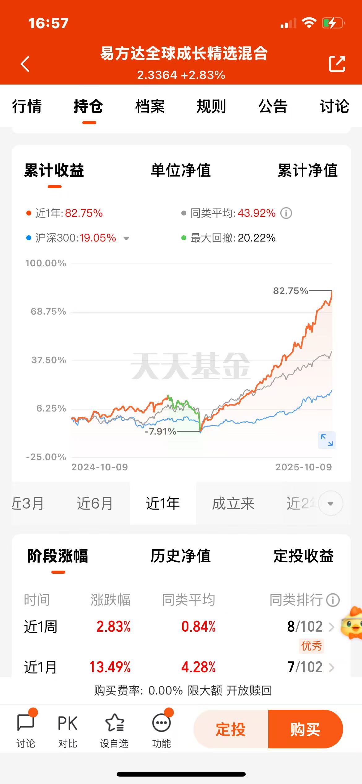从业绩也能看出,增长稳定,基金经理的调仓能力很强悍,涨多跌少,宝藏基!