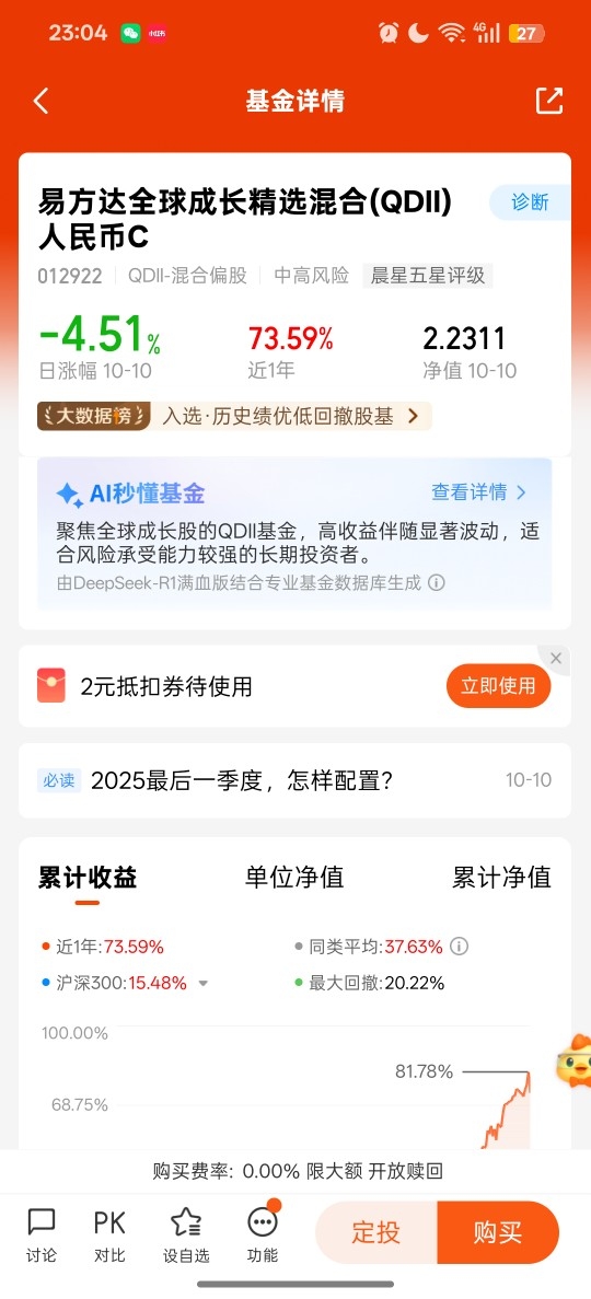 最后一个季度我觉得守住前面的收益就很好了。最近特朗普又开始搞事情,市场短期情绪波动,又到了积攒份额的好时机啦~@易方达基金