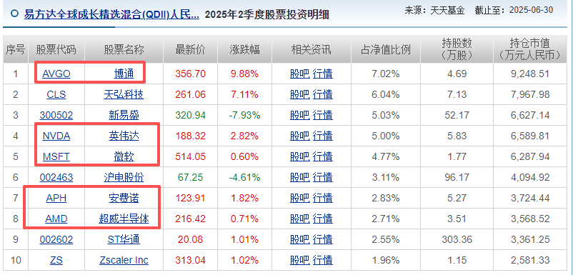 (2)基金表现:$易方达全球成长精选混合(QDII)人民币C(OTCFUND|012922)$这基不得不说,长期绩优,基金经理调仓能力强,咱们看下最近几个季度的调仓数据,非常清晰。Q1重仓港股吃到估值修复、Q2重仓美股吃到上涨,7-8月看起来又调仓到了CPO,吃到了CPO的大行情。每波大行情都成功吃到,说明了基金经理的调仓能力特别强悍。