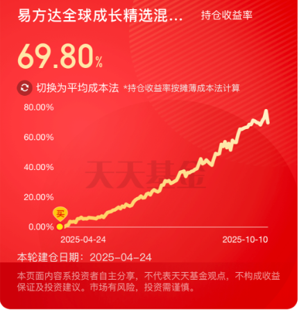 往后看,无论是全球还是国内,大科技依旧是主线。比如我持有的$易方达全球成长精选混合(QDII)人民币C(OTCFUND|012922)$,目前持仓收益率已经69.8%了,恭喜当时和我一起上车并坚守到现在的朋友。