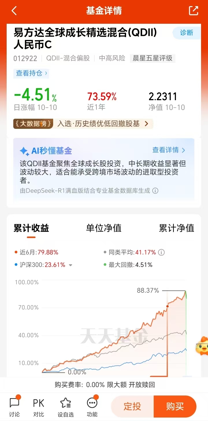 昨晚美股反弹太给力啦,科技行情大概率要再次动了!我之前买的$易方达全球成长精选混合(QDII)人民币C(OTCFUND|012922)$感觉挺不错的,国庆比美港股涨得好,还不用纠结踏空单一市场。现在正好有点回调,之前想加仓没赶上,这会儿碰上科技行情启动,跟着基金经理的准眼光,继续关注补仓点了!#稀土价格暴涨37%!稀土板块狂飙#