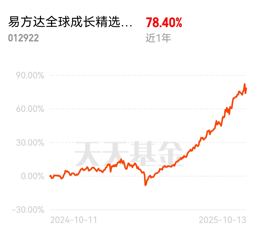 我还是继续看的这支$易方达全球成长精选混合(QDII)人民币C$ ,近半年也大涨了80.55%,确实还不错了,尤其是全球央行降息周期开启,全球科技类资产有望持续;