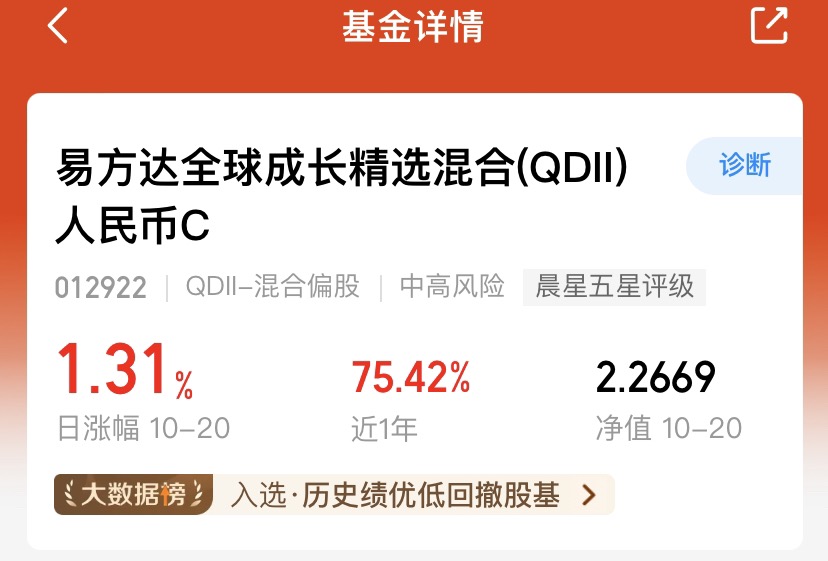 今天大A处于回调状态,海外科技最近表现不俗,全球科技板块各自都有布局价值。我得$易方达全球成长精选混合(QDII)人民币C$ ,不用拆分配置,一键拿下美股、港股、A股,基金经理通过全球调仓捕捉行情,既能把握海外科技的机会,也能应对A股回调,操作省心还能跑赢单一市场,确实靠谱。