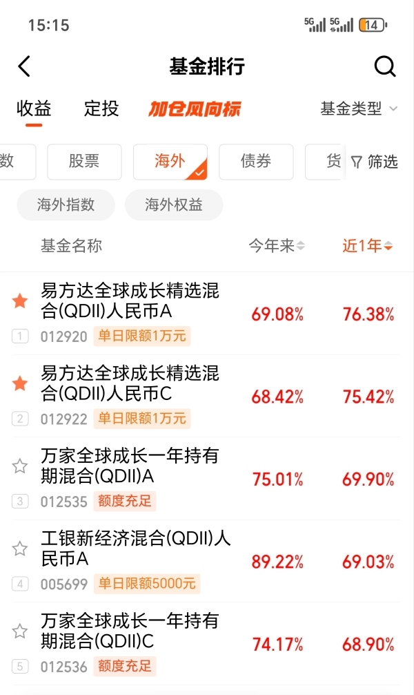 今日市场行情虽然有所波动,但大科技作为今年主线,在利好的持续催化下,上涨趋势只会越来越明显,其中我也比较看好:易方达全球成长精选混合(QDII)人民币C紧密跟踪市场热点,持仓全面地覆盖了全球科技龙头公司,如海外美股、港股科技,国内互联网科技龙头等!因为覆盖面更广,所以才能精准捕捉行业发展机遇,更是远远跑赢纳斯达克100指数,在当下非常具有稀缺性,我也将长期拿稳,期待接下来的上涨行情!