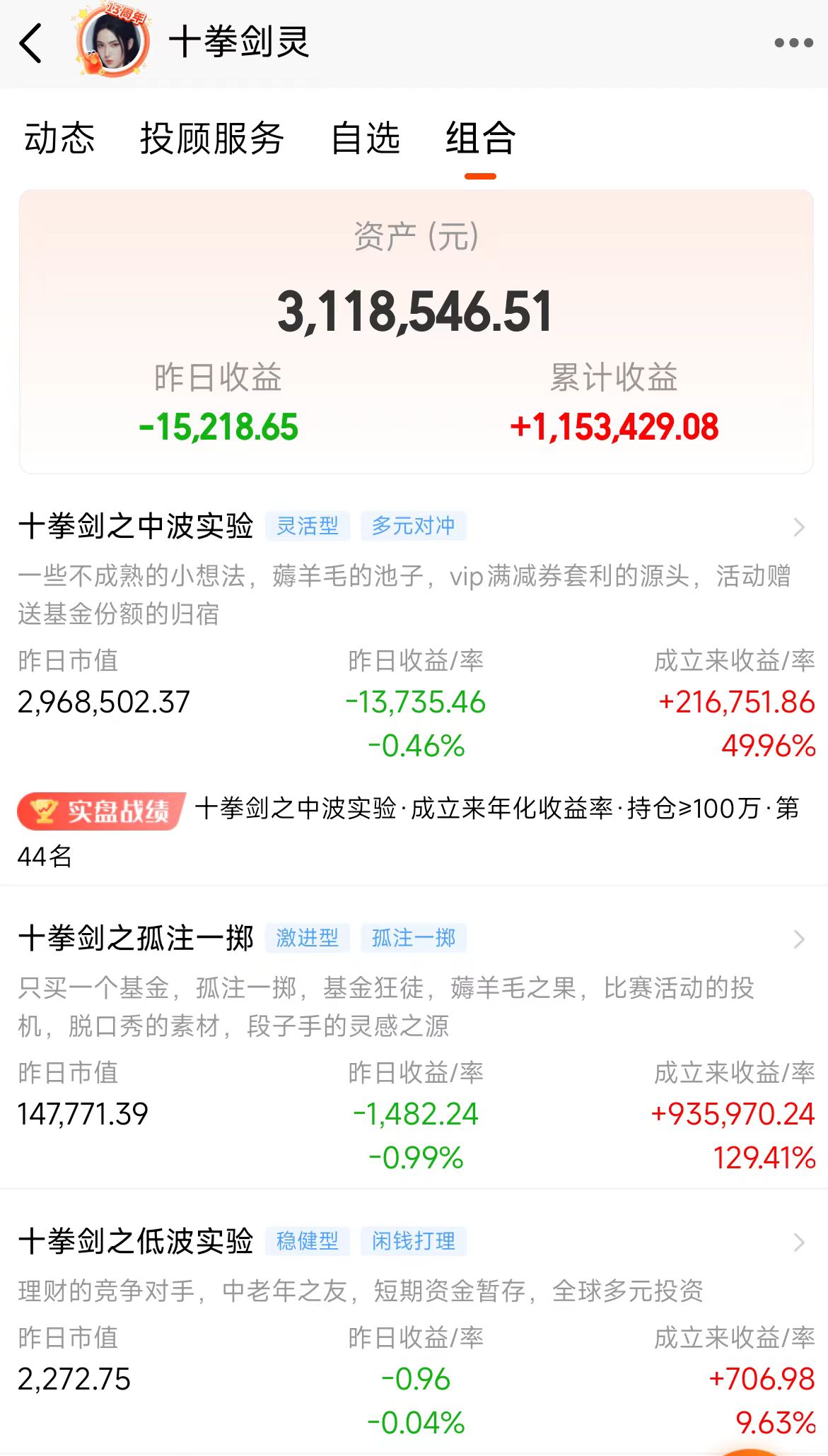 其实手动跟车和调仓都有点麻烦,所以也可以跟我一样,将部分资金买入投顾组合: