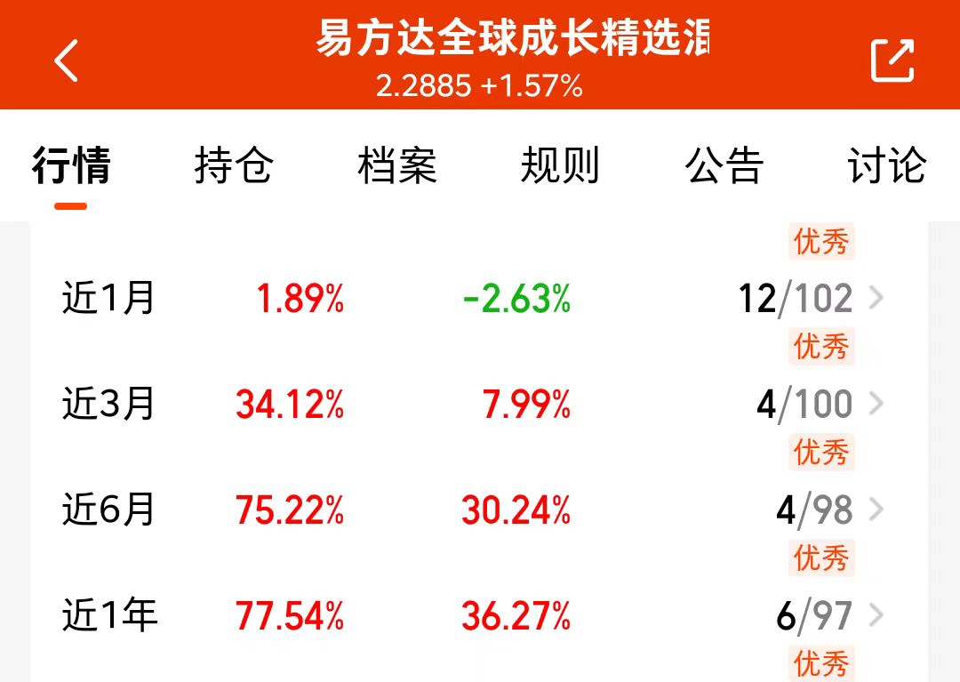 友友们,为什么说布局科技要有全球眼光呢,因为全球科技板块都各有优势呢。我持仓的$易方达全球成长精选混合(QDII)人民币C(OTCFUND|012922)$就是一键布局美股、港股、A股三地市场,基金经理通过全球范围调仓,及时把握全球科技板块行情,也很优秀,跑赢单一市场,大家也可以关注一下,布局全球科技,这一只就够了。