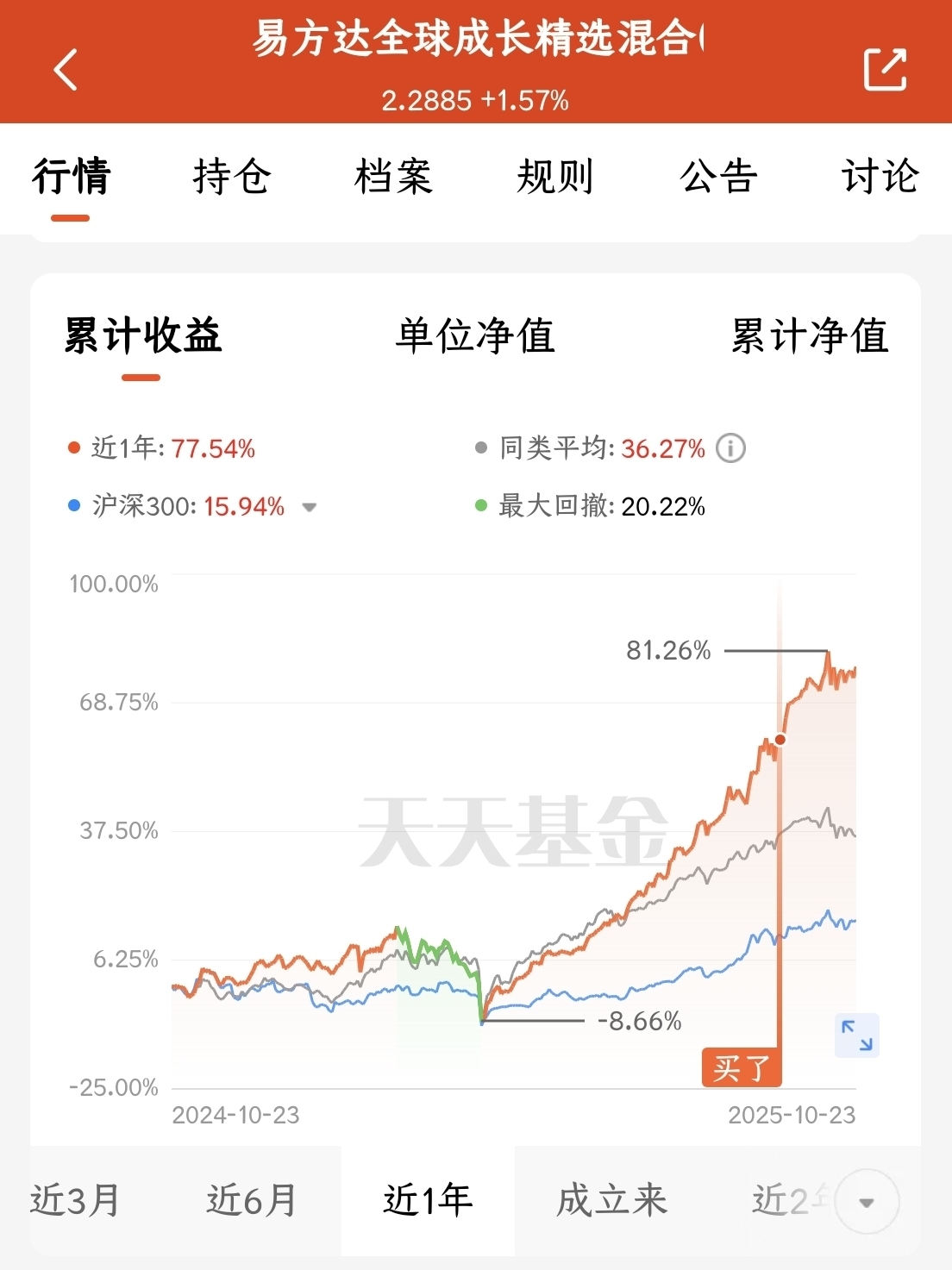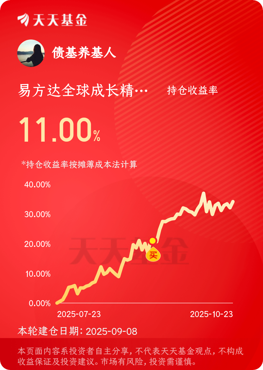 随着降息周期启动,科技资产迎来利好。今天股市也是高开高走,迎来了这周的开门红。投资科技要全面,美股机器人、AI领跑技术前沿,A股的算力基建不可或缺,港股互联网巨头则为AI落地核心引擎。全球配置可分散单一市场风险,$易方达全球成长精选混合(QDII)人民币C$ 精选绩优低波动标的,回撤控制的不错,现在市场震荡上行,逢低加仓才是王道!