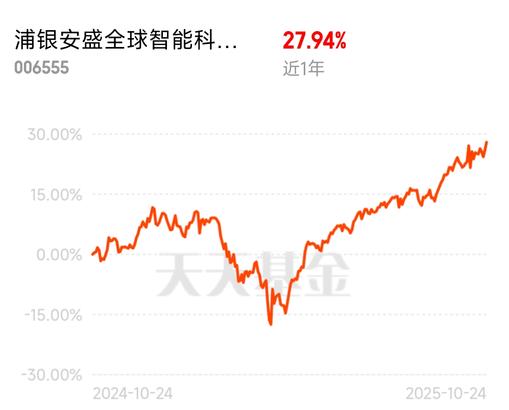 国内科技震荡,配置美股分散风险!浦银安盛全球智能科技跑赢纳指、覆盖AI链,近6月涨超40%,不限购额度管够$浦银安盛全球智能科技(QDII)C$ $浦银安盛全球智能科技(QDII)A$