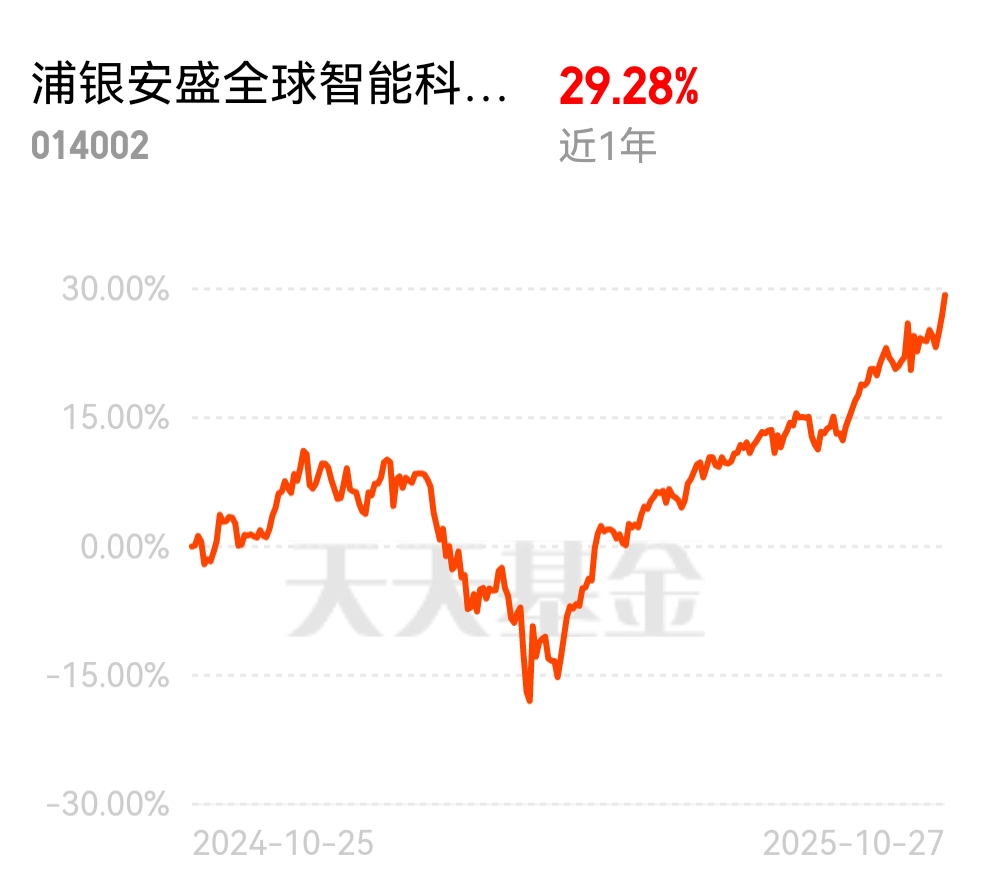 昨晚浦银净值超纳指100,纳指整体拉高了不少,这么好的机会何妨不试试浦银安盛全球智能科技,重仓美股科技龙头,近一年涨超27%$浦银安盛全球智能科技(QDII)C$