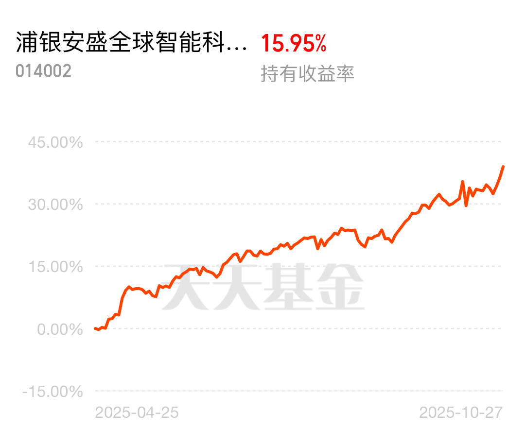 浦银安盛全球智能科技重仓美股科技龙头,海外AI产业链一条龙都覆盖了,看的准弹性高