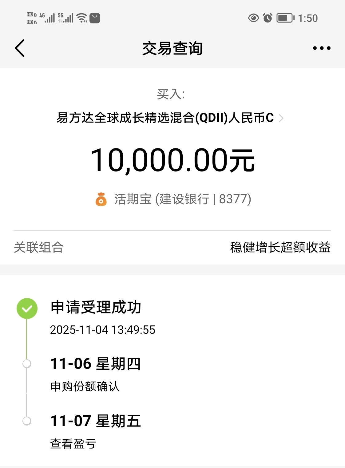 $易方达全球成长精选混合(QDII)人民币C$ #晒收益#