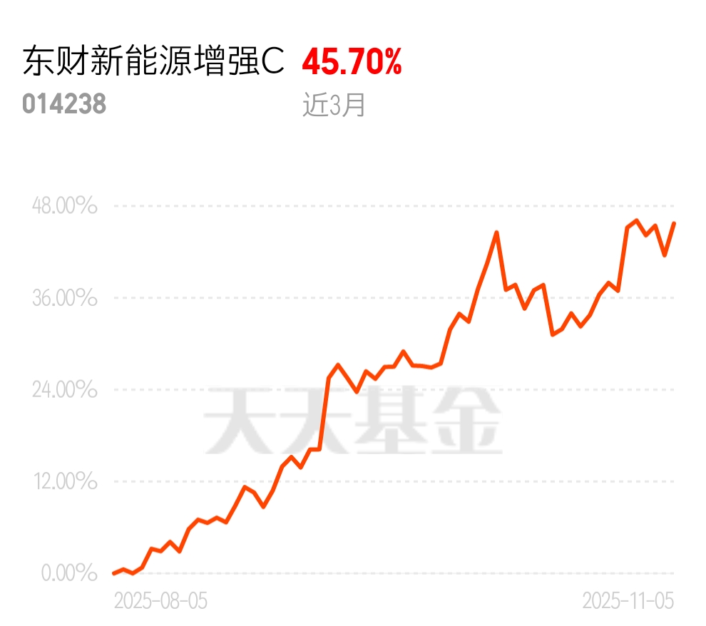 新能源板块估值合理,业绩增长确定性高,成为机构配置的核心方向。西藏东财中证新能源指数增强C近3个月收益45.70%,跟着机构脚步投,专业的选择更靠谱。 $东财新能源增强C$