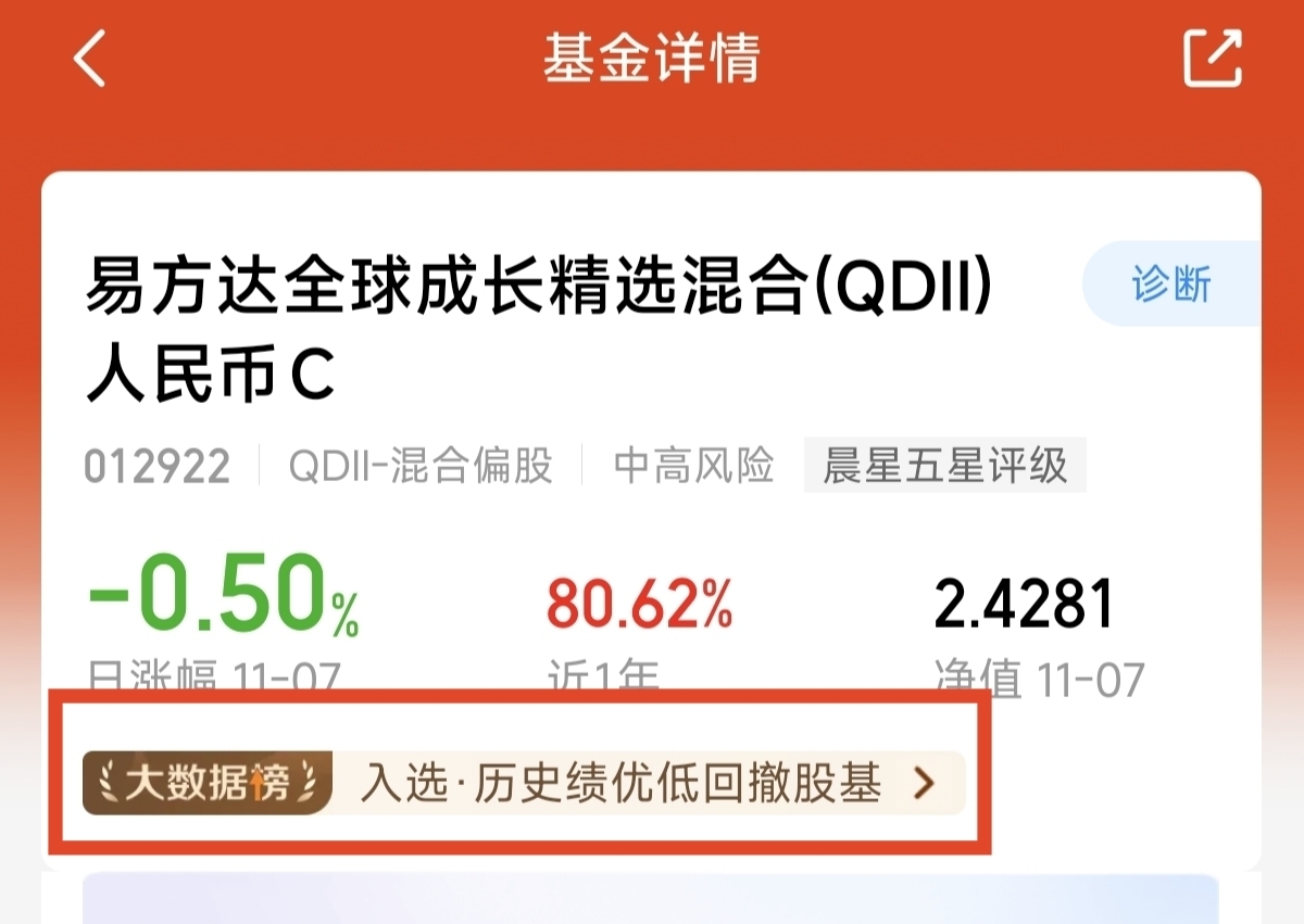 当前来看,全球科技依然还是主线。昨夜的美股科技再度迎来全线爆发。$易方达全球成长精选混合(QDII)人民币C$ 是聚焦全球科技的主动混合基金。基金经理通过投资a股,港股,美股多地来把握全球科技机会,长期业绩能力优秀。近一年涨幅80.62%。而且遇到波动回撤控制的好。长期表现都是涨多跌少。