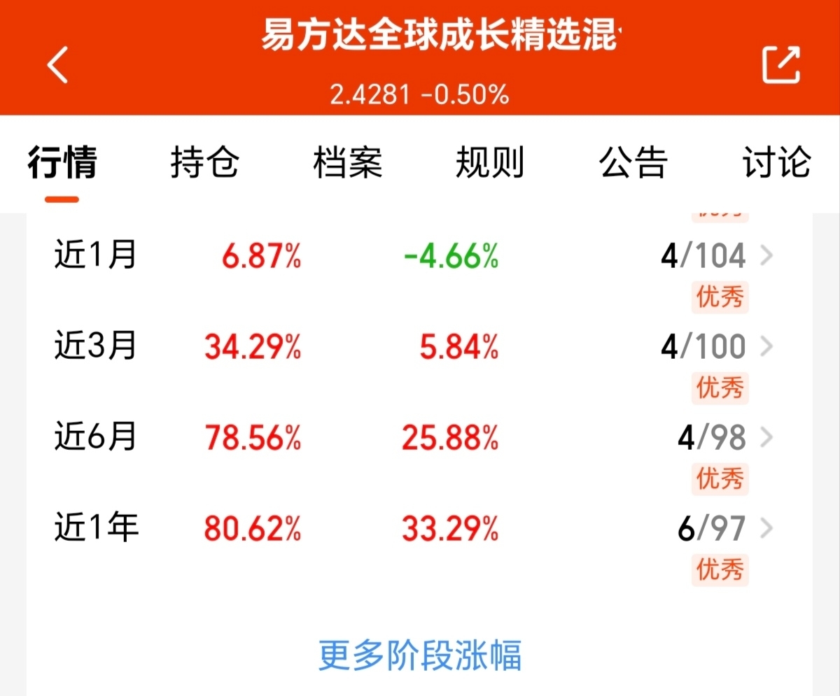 近期科技市场有所波动,但自今年以来,全球科技领域就火热不断,收益率更是屡屡创新高度,所以短期回调,并不改长期向好趋势,而在这种行情之下,$易方达全球成长精选混合(QDII)人民币C$ 不但精准把握全球市场热点赛道,一键打包A股、美股、港股科技龙头,并且非常具有稀缺性,让我无需操心频繁调仓,近一年涨幅超80%,我也打算开始加仓起来啦!