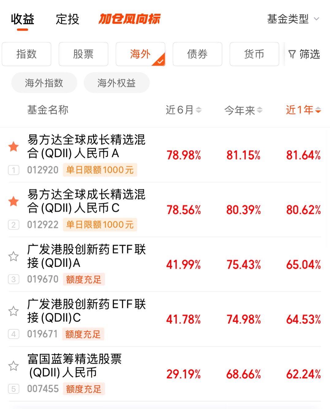 $易方达全球成长精选混合(QDII)人民币C$ 作为全市场稀缺的全球科技配置工具,凭借其卓越表现荣登同类业绩榜首。