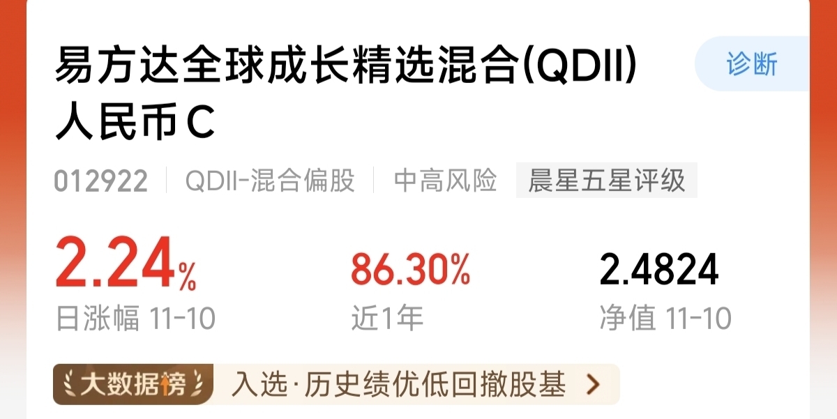 不得不说,美股科技是真的强啊。每次短线调整之后,总是又创新高。随着美联储打开降息,美股科技第一个受益。A股的算力。蒙古的互联网都有望紧跟随后,所以我目前坚定看好全球科技的成长机会!$易方达全球成长精选混合(QDII)人民币C$ 这是聚焦全球科技的主动混合基金。通过投资a股,港股,美股多地来把握全球科技机会。还能规避单一市场波动风险。业绩长期表现的非常不错。昨天又大涨2.24%。近一年涨幅86.3%。今年来一直在创新高。未来长期来看,球科技的成长空间还比较大。我看好基金长期的稳定盈利表现。