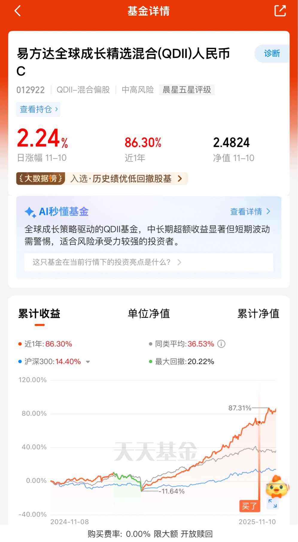 在此背景下,$易方达全球成长精选混合(QDII)人民币C$ 展现出独特配置价值。