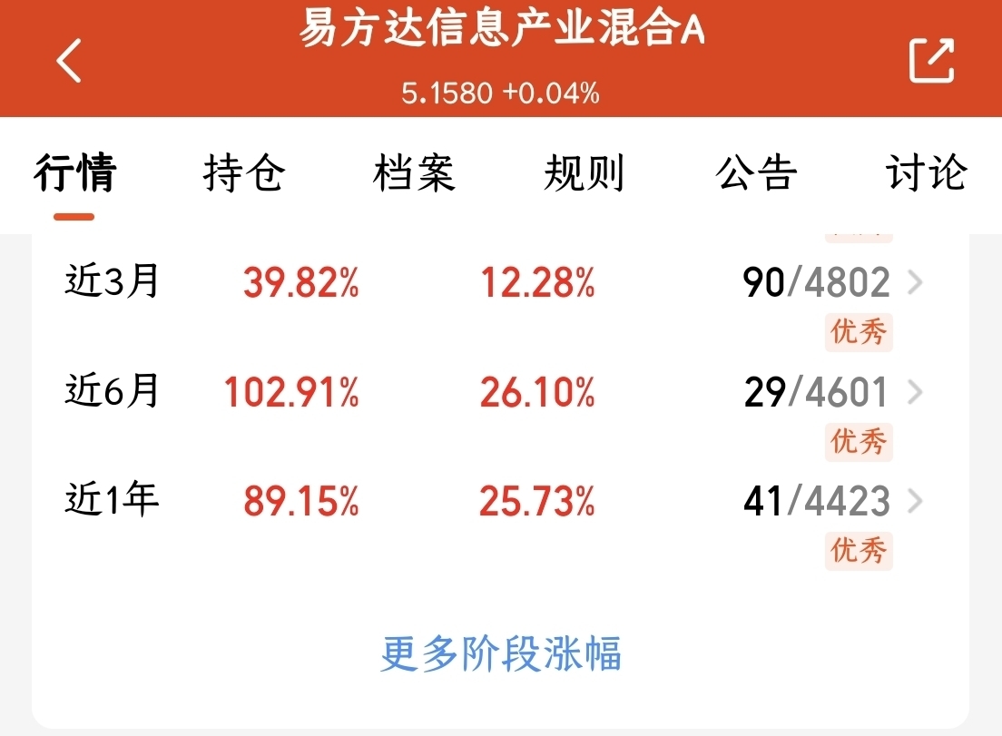 近期易方达全球成长精选额度收紧,不过我们还可以关注,$易方达信息产业混合A$ 。该产品由同一基金经理管理,额度充足,投资策略与全球精选高度一致,主攻科技赛道,侧重信息产业优质标的。历史业绩表现突出,近一年收益稳健,累计回报显著超越同类平均。产品聚焦5G、人工智能、半导体等高成长领域,契合科技升级趋势。