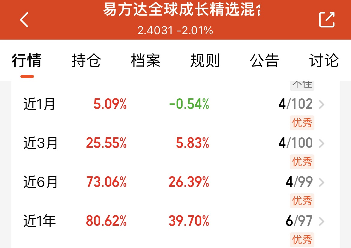 今日大盘和港股市场都有所调整,科技赛道虽有波动,但今年科技主线的长期趋势没改。易方达全球成长精选混合C主攻全球科技方向,能同时布局多市场机会,今年以来涨幅80.62%远超美股,既不用怕踏空行情,还能分散单一市场风险,表现还是不错的。