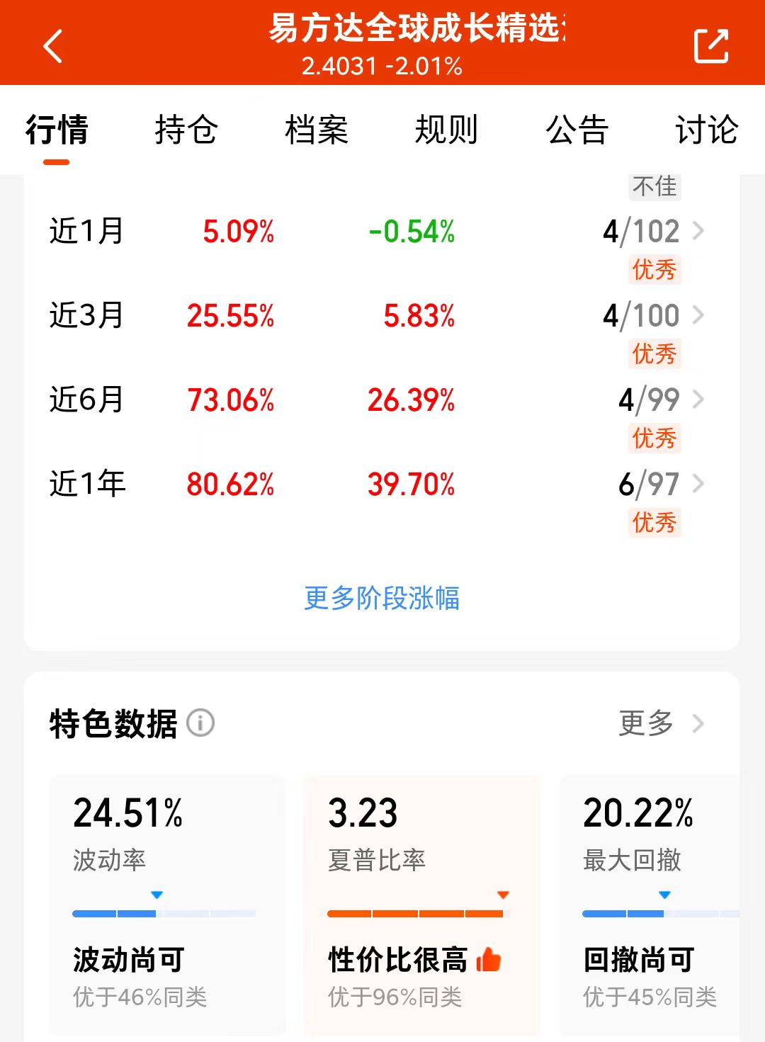 宝子们,A股缩量调整,科技板块回调后,我觉得要开始反弹了,因为科技板块长期没走完,海内外都有很大机会,抓住全球科技板块行情,我上车了$易方达全球成长精选混合(QDII)人民币C(OTCFUND|012922)$,在美联储降息周期内,科技板块也将持续受益,这只基的基金经理通过全球范围调仓精准控制回撤,业绩优秀。
