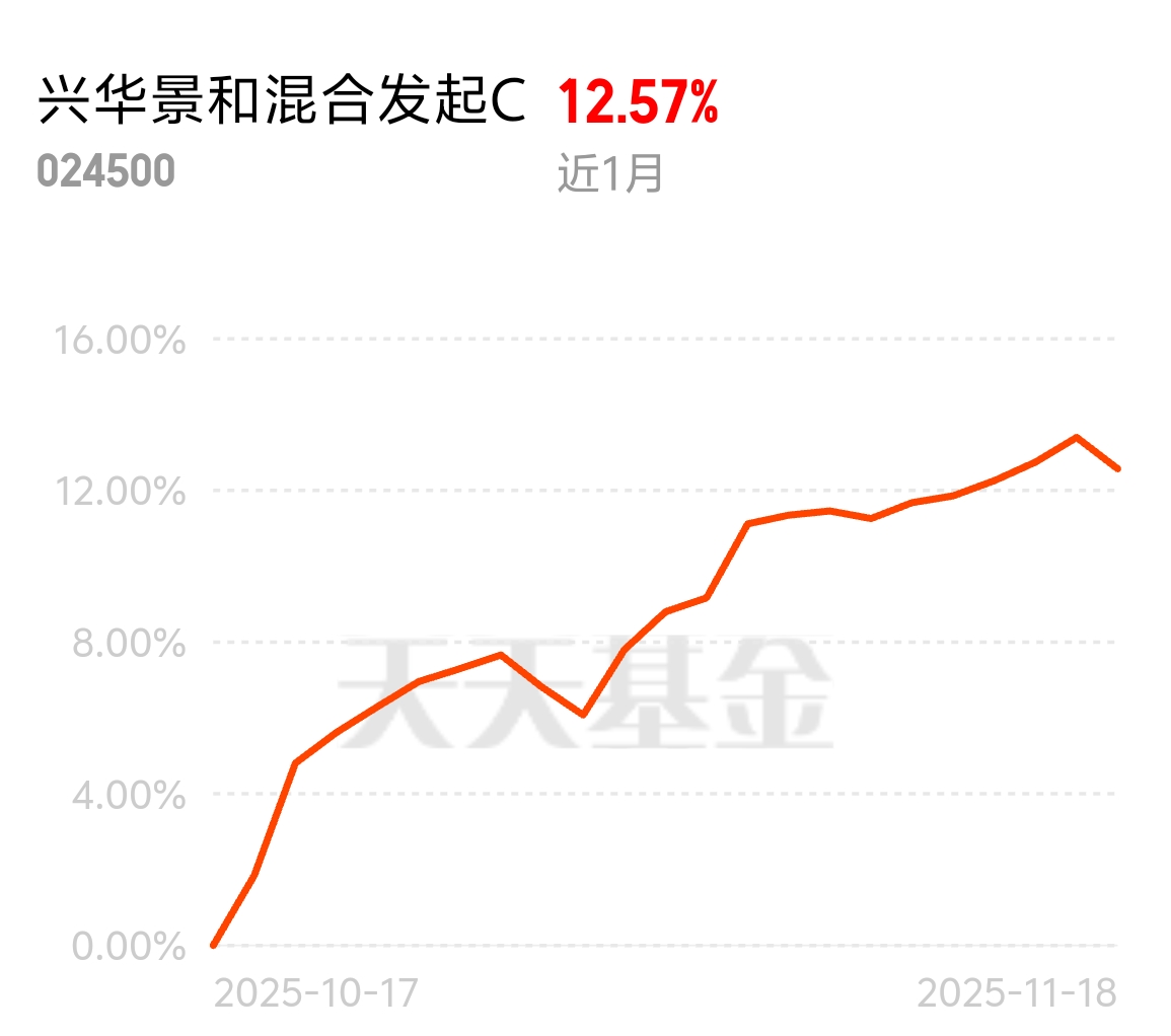 兴华景和基金控制回撤的能力很优秀,近一个月收益12.57%,成立以来累计回报27