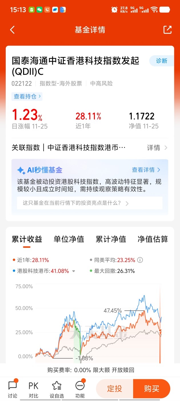 $国泰君安中证香港科技指数C$022122估值又低业绩还好,趁便宜多买点,