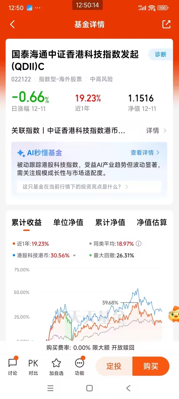 最近在考虑补点港股科技,国泰海通中证香港科技估值不算高,业绩也比较稳,配置着挺安心的