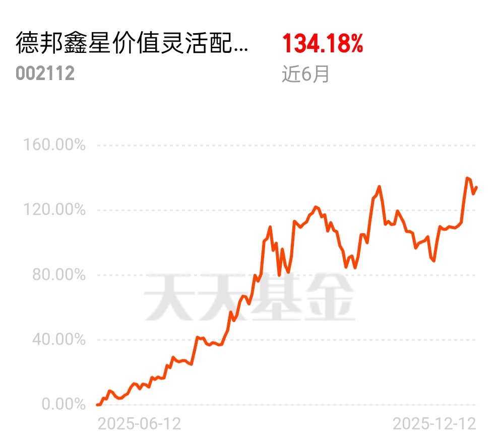 高收益基金规模快速增长,大家都在追优质基,$德邦鑫星价值灵活配置混合C$ 近 6 月收益 134.18%。鑫星最近表现在四大天王里还不错,跌了就加点,年底再冲刺一下,好基就得趁早入手。