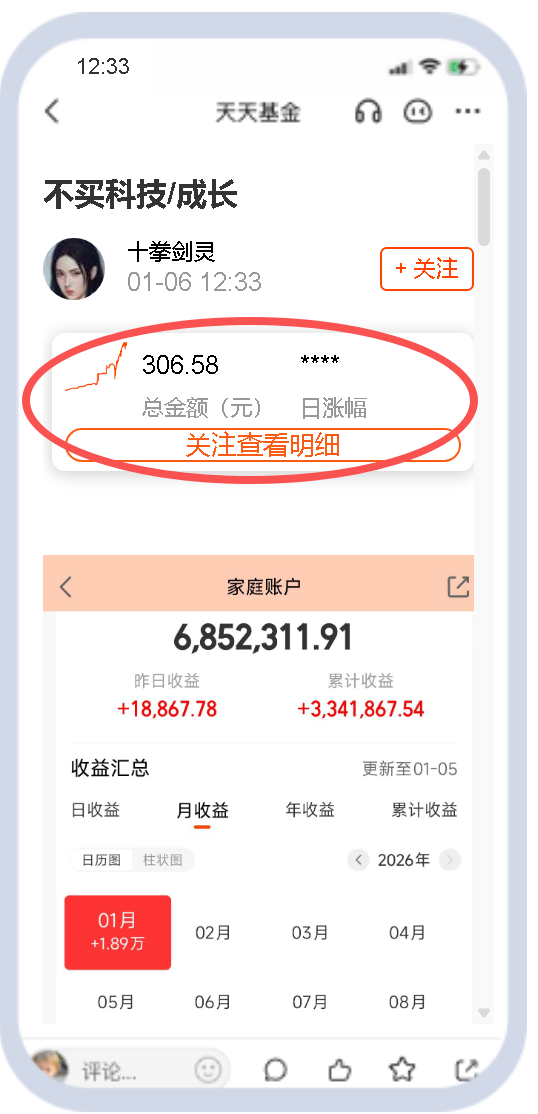 点击作者头像,进入天天基金主页,可以看到三个公开实盘: