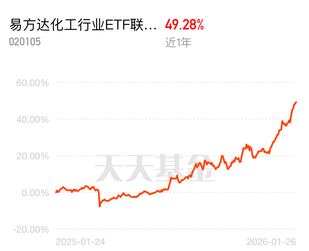 布局化工选对标的很重要,易方达化工行业 ETF 联接 C 近 1 年 49.28% 的收益超靠谱,行业产能出清后盈利空间打开,龙头企业更具优势,入手正当时$易方达化工行业ETF联接C$