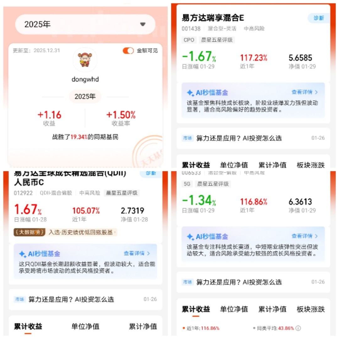 #2025超额关键词#2025,我的收益情况是1.50%,我的超额关键词是“从头再来” 选择了“盈利但暂未超大盘” ,去年的投资上我偏保守了,依然坚守新能源赛道,忽视了强劲上涨的科技成长板块,怕再次追高,所以年末深度思考后明白:当前行业轮动快速,以新能源,半导体,人工智能为代表的高景气赛道都是具有较强科技属性的行业,具备长期高成长能力,具有良好的投资前景。同时高回报也意味着高波动与高风险,要正确看待波动和调整。
