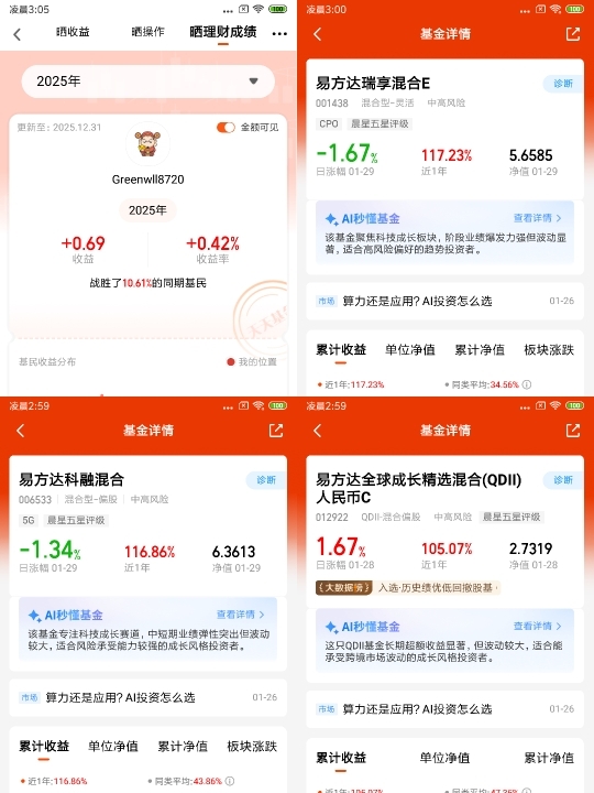 #2025超额关键词# 2025年,我的收益情况是0.42%,我的超额关键词是“坚守初心”,这次行情我错过了,我依然在投资固收类基金,当行情转换的时候没有抓住投入,然后行情越好,越不敢投入,针对这个情况我在明年的投资上会积极一点。市场经历两年调整,估值回归趋于合理,生产生活开始正常发展,经济复苏信心开始恢复;稳增长政策开始逐步发挥威力,各种促进经济恢复和发展的推出,对金融和基建的行业的推动,再一个就是外部影响因素逐步放缓和减少得到改善都会促使经济和A股进入一个复苏上升时期。