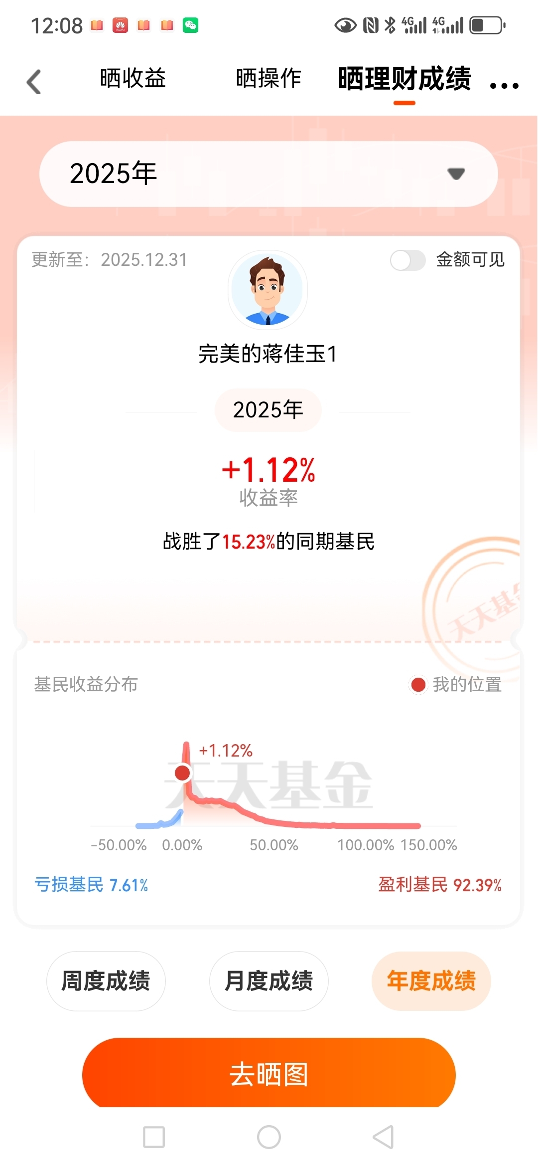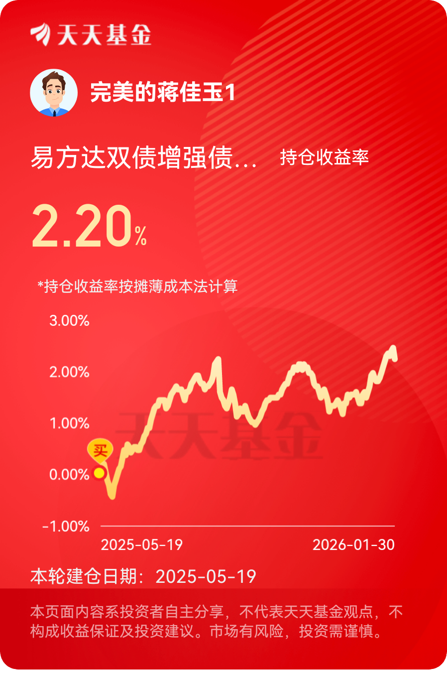 #2025超额关键词#我选择了“盈利但暂未超大盘” ,2025年,我的收益情况是没有跑赢沪深三百,我的超额关键词是耐心。去年收益率为1.12%,比较一般,本人属于长线定投的操作,而且只投债基,每月进行定投,然后长期持有,基本上是能年年红盘,希望26年也是如此。#晒收益#