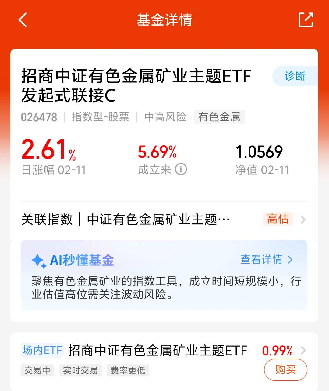 大盘今天涨起来了,有色继续上涨,$招商中证有色金属矿业主题ETF发起式联接C$昨天涨了2.61%, 最近战争金属供给受限,地缘政治引发了需求扩张,价格上涨的逻辑明确,长期看好有色金属,我准备分批布局!