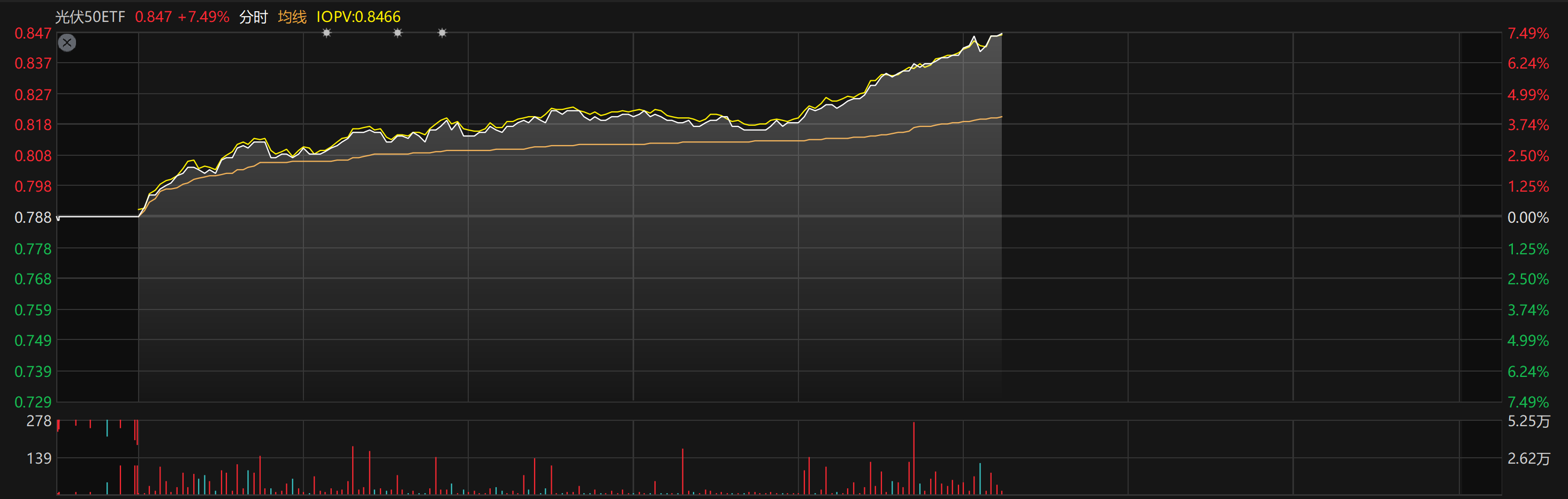 2025年10月29日,A股光伏板块迎来久违的普涨行情。截至当日早盘,中证光伏产业指数强势上涨近5%,光伏50ETF(516880)盘中涨幅超6%,成分股中阿特斯、隆基绿能涨停,特变电工、阳光电源涨逾8%。这一表现与近期光伏行业基本面改善密切相关。回顾三季度,光伏板块在“反内卷”政策推动下已初现回暖迹象:7月以来,硅料、硅片价格触底反弹,以N型G12单晶硅片为例,其价格从7月初的1.19元/片涨至9月下旬的1.68元/片,涨幅超40%。价格回升直接利好上游企业,TCL中环三季度亏损同比收窄48.82%,毛利率虽未转正但已显著改善;而阳光电源前三季度净利润同比增长56.34%,储能业务海外发货占比提升至83%,凸显龙头韧性。