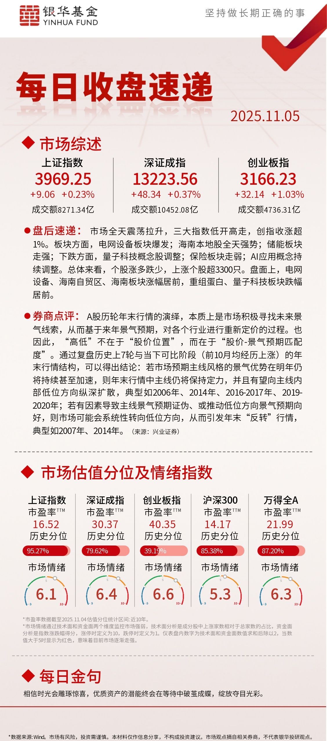 每日收盘速递 | 2025.11.5 市场全天震荡拉升,三大指数低开高走