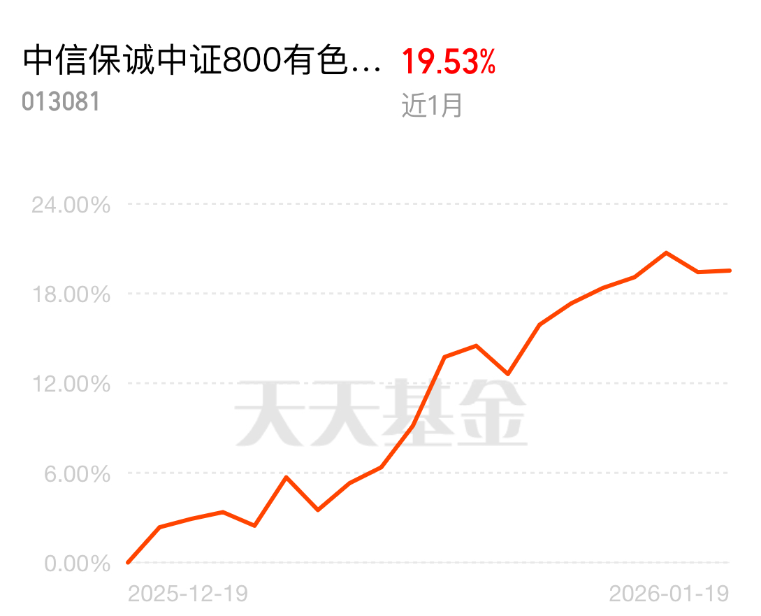 有色板块回调别犹豫,果断加仓把握机会。中信保诚中证 800 有色指数 (LOF) C 近 1 月涨 19.53%,果断布局,不错过良机。$中信保诚中证800有色指数(LOF)C$