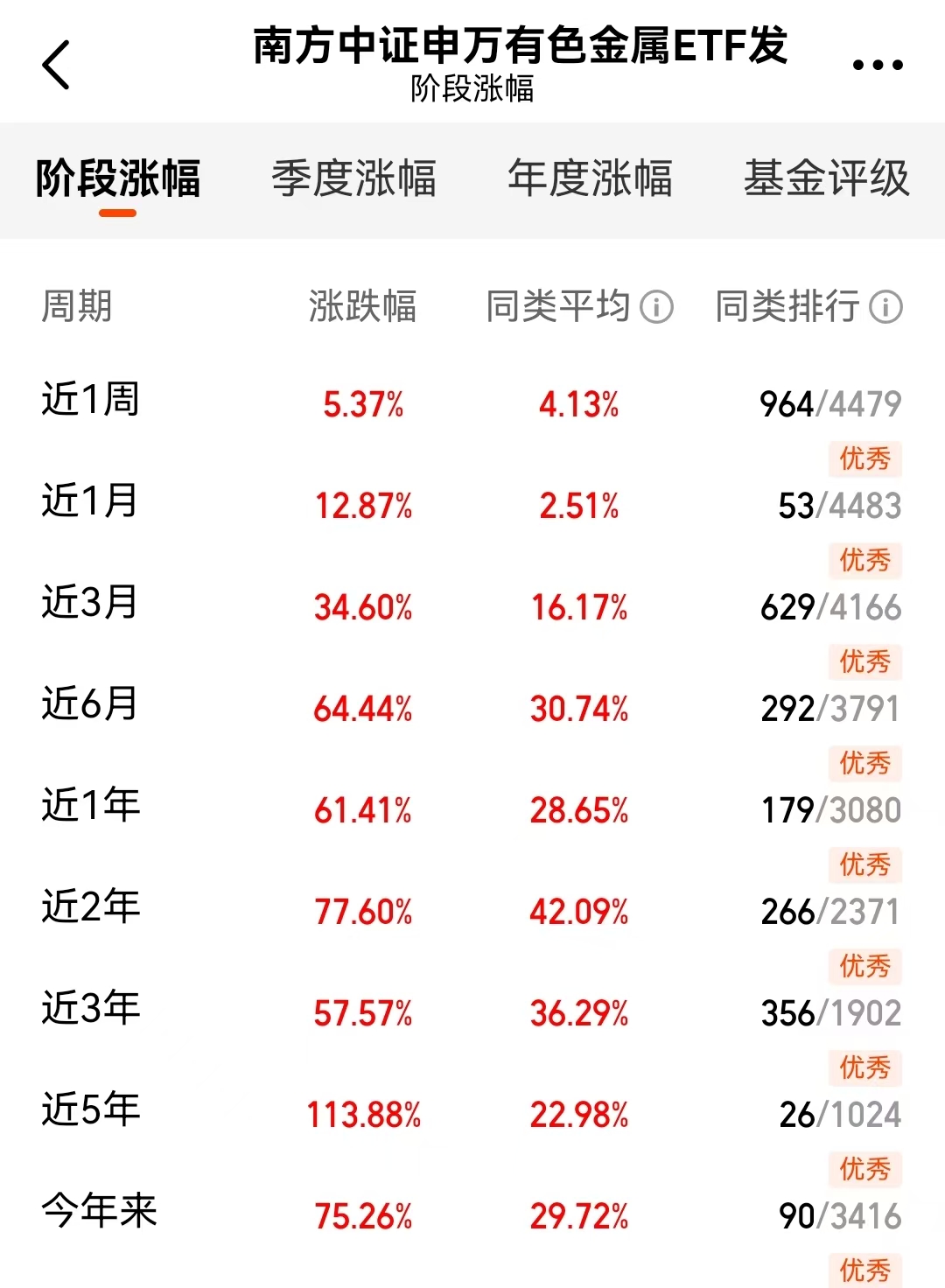 这个$南方中证申万有色金属ETF发起联接A$(004432)今年以来涨了75%以上,在同类里排前几十名,业绩自己会说话。这基金通过投资ETF随着指数,不需要咱们自己研究个股,省时省力。而且它的管理人是老牌公司,基金经理经验丰富。对于想参与周期行情的散户,这种指数化产品透明度高,费用也相对低,算是踏实的选择。#现货黄金跌破4000美元!缘何突然暴跌?#
