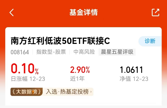 总结一下近期的市场感受,波动加大可能是很多人的共识。在这种背景下,我倾向于在组合里增加一些“压舱石”。$南方红利低波50ETF联接C$(008164)进入我的视野,一个重要原因是它长达20个月的连续分红记录。这不仅是历史数据的证明,也体现了其背后公司群体的现金流质量。高股息策略在当前阶段,提供了一种兼顾防守与潜在回报的思路。在结构性行情中,当某些方向过热时,这类资产往往估值更合理,安全性更好。配置一部分,可以让整个投资过程变得更平稳、更可持续。#【跨年坦白局】提问金梓才、陈果#