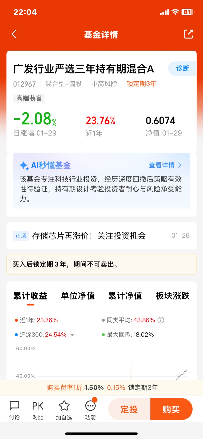 三年持有期,本来想避免追涨杀跌,可看着净值跌也卖不了