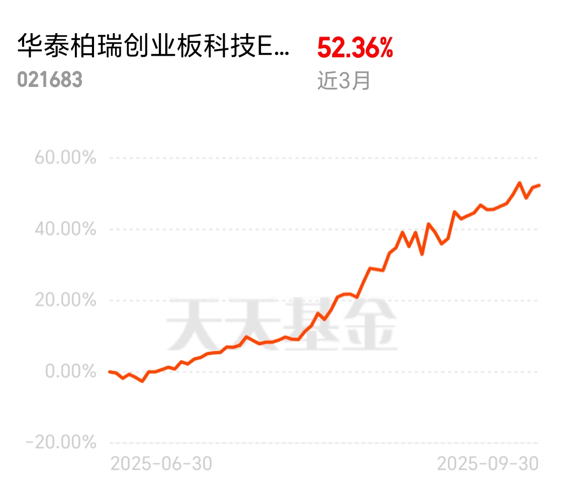 今天创业板表现强势,科技板块贡献很大。华泰创业板科技近3个月涨了52.36%,今