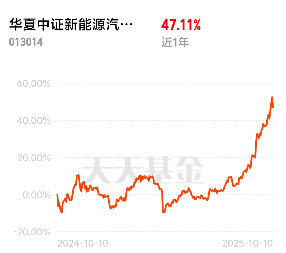 从基金本身来看,华夏中证新能源汽车ETF联接C(基金代码:013014)作为指数型基金,紧密跟踪中证新能源汽车指数,覆盖新能源汽车产业链上下游核心环节,属于中高风险(R4)产品。其业绩呈现显著的阶段性特征,截至2025年9月1日,过去一年净值增长率达57.42%,今年以来涨幅24.72%,近一月更是实现16.13%的快速增长,显示出行业景气度回升期的弹性优势 。不过拉长周期看,基金成立以来受行业波动影响较大,过去三年仍有亏损,反映出新能源赛道高波动的特性。