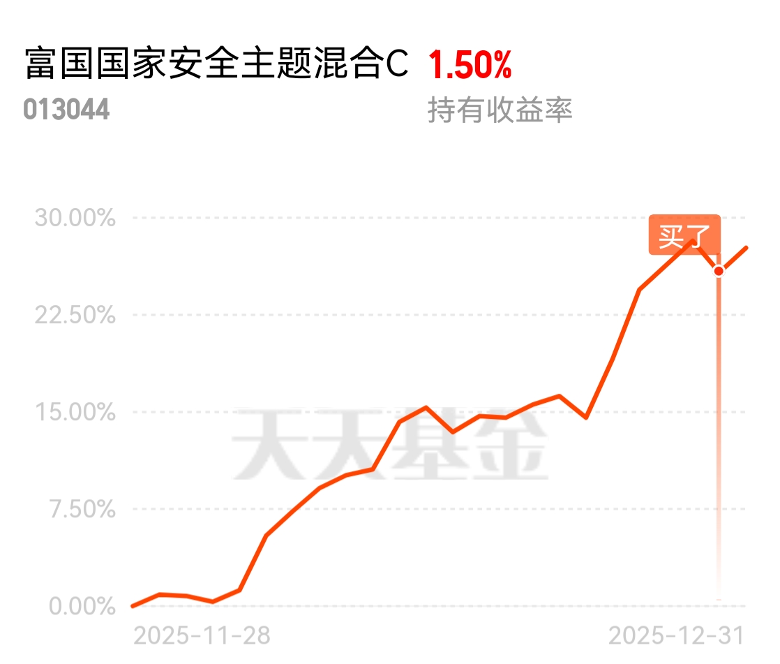 国家安全至关重要,发展是安全的基础,只有国家经济繁荣、科技进步、民生改善,才能为维护国家安全提供坚实物质支撑和民心底气;安全是发展的条件,唯有筑牢国家安全屏障,才能为经济社会高质量发展营造稳定环境,避免发展成果因风险冲击付诸东流,今天盘面其实并不是很乐观,$富国国家安全主题混合C$ 表现很出色,今日涨幅1.50%,近一年涨幅54.44%,业绩优秀,今年完美收官。