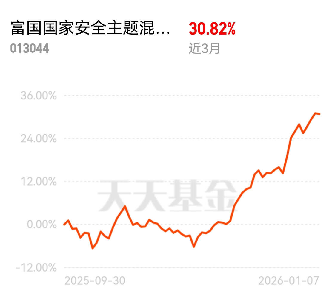 今天大家吃肉了吗?我把部分医药止盈了,还是计划多加点仓到热门的军事卫星板块上去,$富国国家安全主题混合C$这只基就不错,持仓有最火的商业航天,互联网卫星,走势真是太强了,近一个月上涨24.34%,近3个月上涨30.82%,在军工基金中,YTD收益排名第1,还带卫星,涵盖很广,也不会像永赢和指数那么纯,更加注重回撤控制,持有体验还是很好的,现在国际局势冲突不断,对军工这块还是有利好刺激的,所以要拿住了。