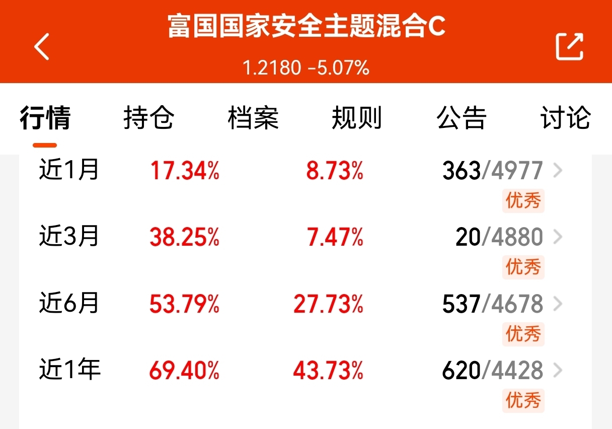 调整其实也是给我们机会,没必要担心,进入“十五五”期间,预计2026 年上半年军工行业基本面有望持续改善,订单端及业绩端将逐步修复,交付和确收节奏预期恢复至常态,此外伴随十五五规划落地,叠加排产规划和订单陆续下达,军工行业确定性有望进一步增强,长线来看问题不大,$富国国家安全主题混合C$ 今日跌幅5.07%,之前涨多了,调整其实也是很正常的。