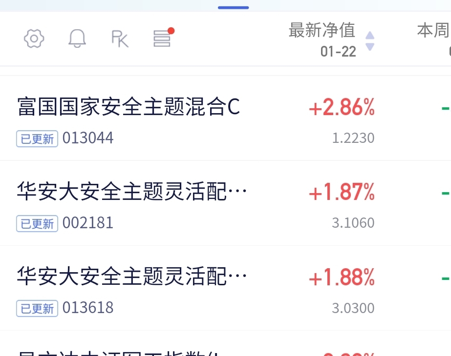 今天权益市场给力阿,富国这只又超额涨单日大涨,布局国家安全主题主打国防军工,各周期业绩表现亮眼。$富国国家安全主题混合C$ 今晚涨2.86%