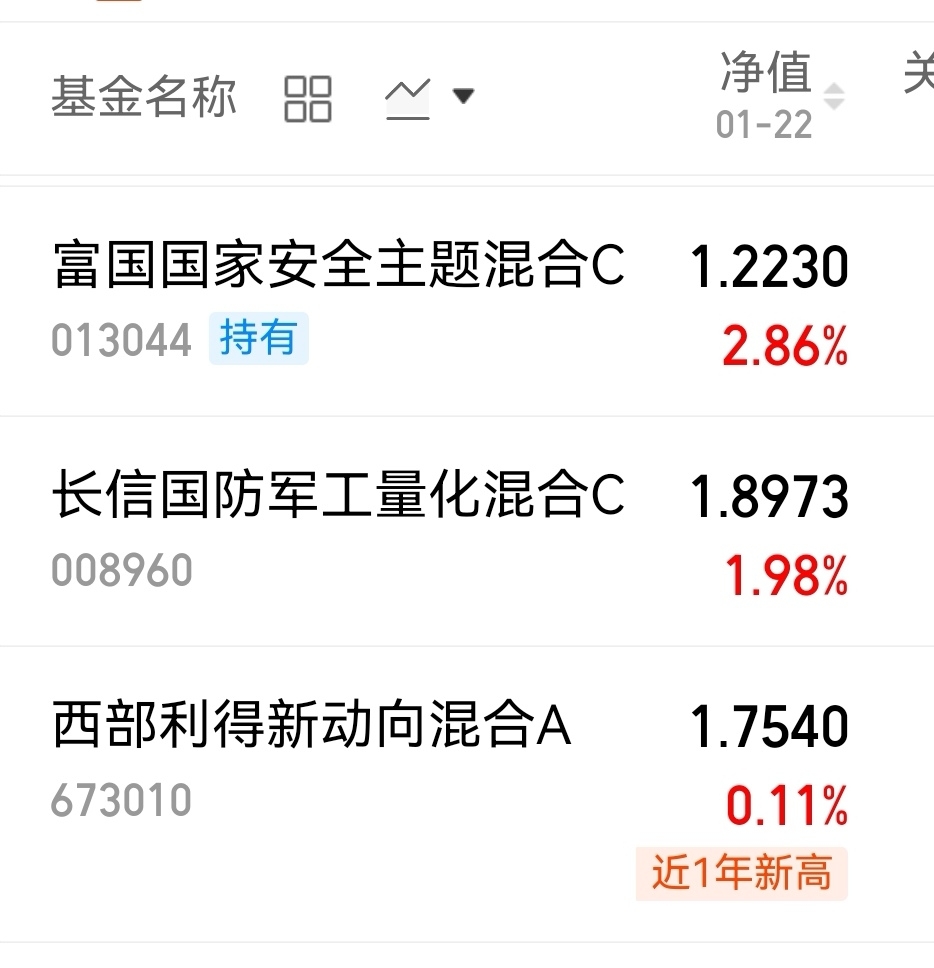 对航空卫星军工板块真的是又爱又恨!前几天还在捶胸顿脚喊着“再也不碰了”,今天就被这只基表现种草了。$富国国家安全主题混合C$ 今天大涨了2.86%,也太给力了吧,这波行情下,航天卫星的周期反转逻辑太,这只基金成功把握了卫星和绩优机械的机会,在军工基金中,YTD收益排名第1。真不错