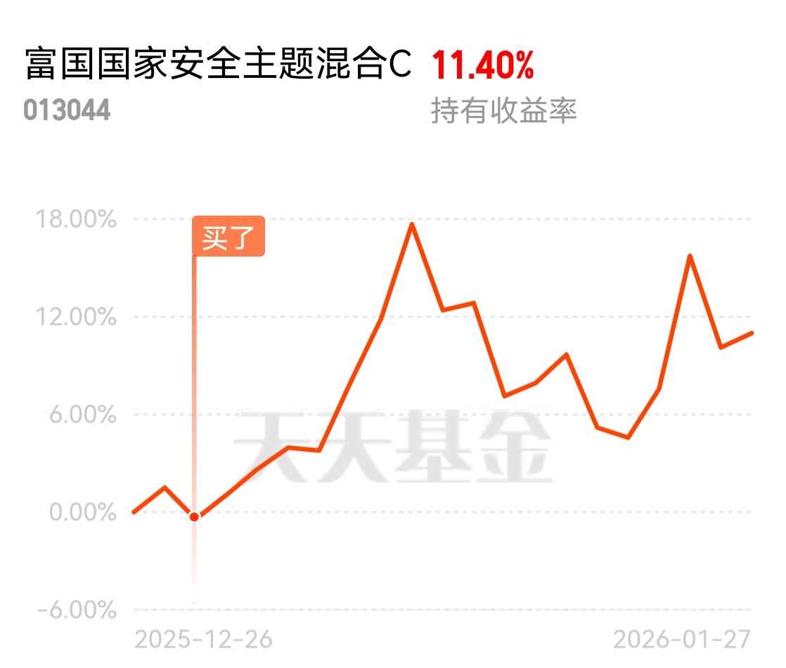继续上涨行情,中国商飞今年将加快国产大飞机C919的生产与交付节奏,交付目标定为28架或以上,年初以来已有两架 C919下线并进入交付流程,如若维持这一节奏,商飞今年有望实现每10至15天生产一架 C919,这是一个大趋势,当前世界正值百年未有之大变局,未来5年军工行业整体或仍处于需求向上周期。今日$富国国家安全主题混合C$ 继续上涨,丈夫0.80%,表现优秀。