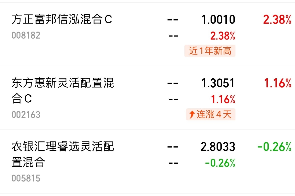 $东方惠新灵活配置混合C$ 目前估值1.16%,加油。